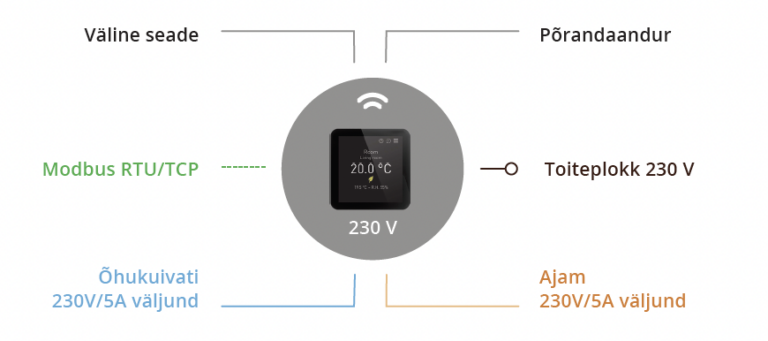 - Temperatuuri, õhuniiskuse ja õhukvaliteedi andur, lisavalikuna põranda- või kondensatsiooniandur